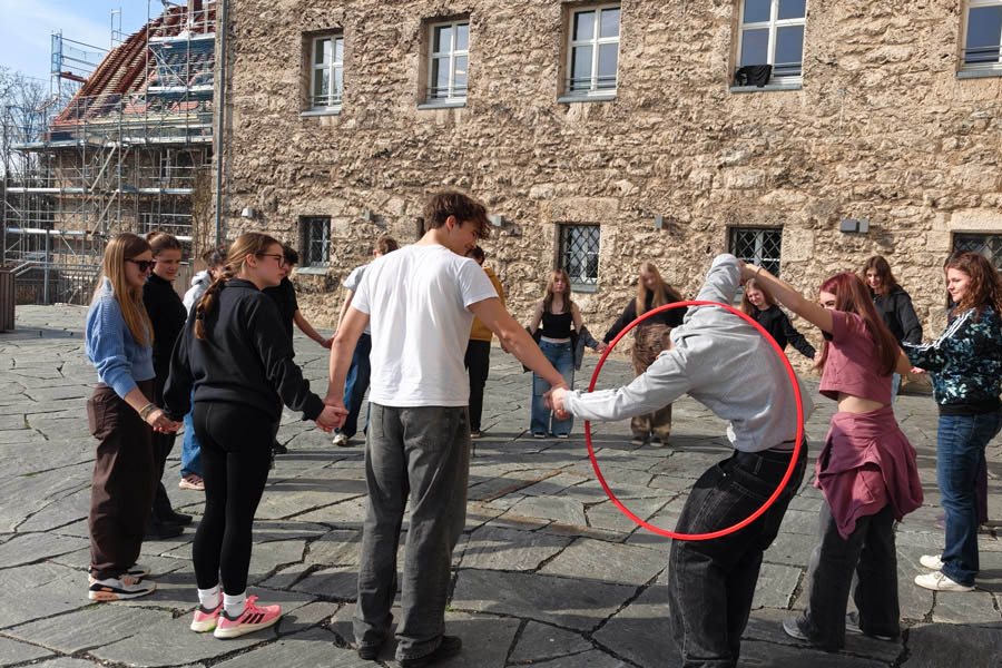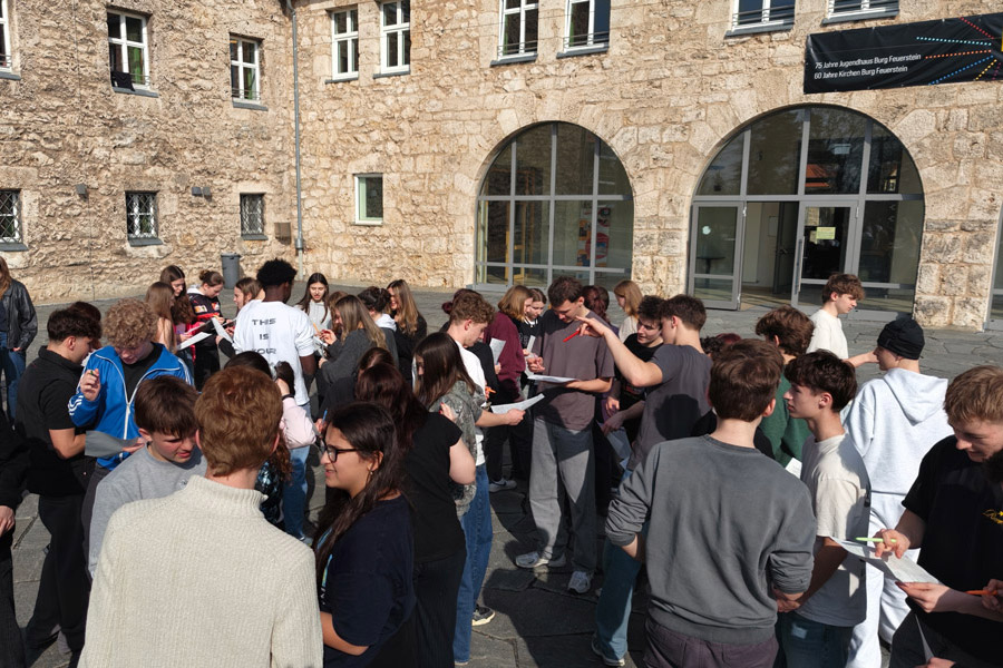 Vom 9. bis 11. März 2026 verbrachte die 11. Jgst. des Friedrich-Alexander-Gymnasiums Neustadt a. d. Aisch ihre Orientierungstage auf Burg Feuerstein. Am Übergang von der Klassen- zur Kursphase stand dabei die Frage im Mittelpunkt: Wo stehe ich – und wohin will ich? In verschiedenen Workshops setzten sich die Schülerinnen und Schüler mit Themen wie Kommunikation, Motivation und Stressbewältigung auseinander, während andere Angebote – etwa der Team-Hochseilgarten oder der Orientierungslauf – praktische Erfahrungen im Umgang mit Herausforderungen und Zusammenarbeit ermöglichten. Neben den Workshops blieb auch Zeit für gemeinsame Aktivitäten und Gespräche.
